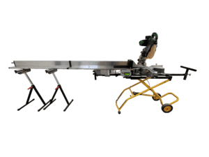 – The moving production stop system with a user-friendly interface that compensates for miter and bevel angles, and aids with crown molding cuts.